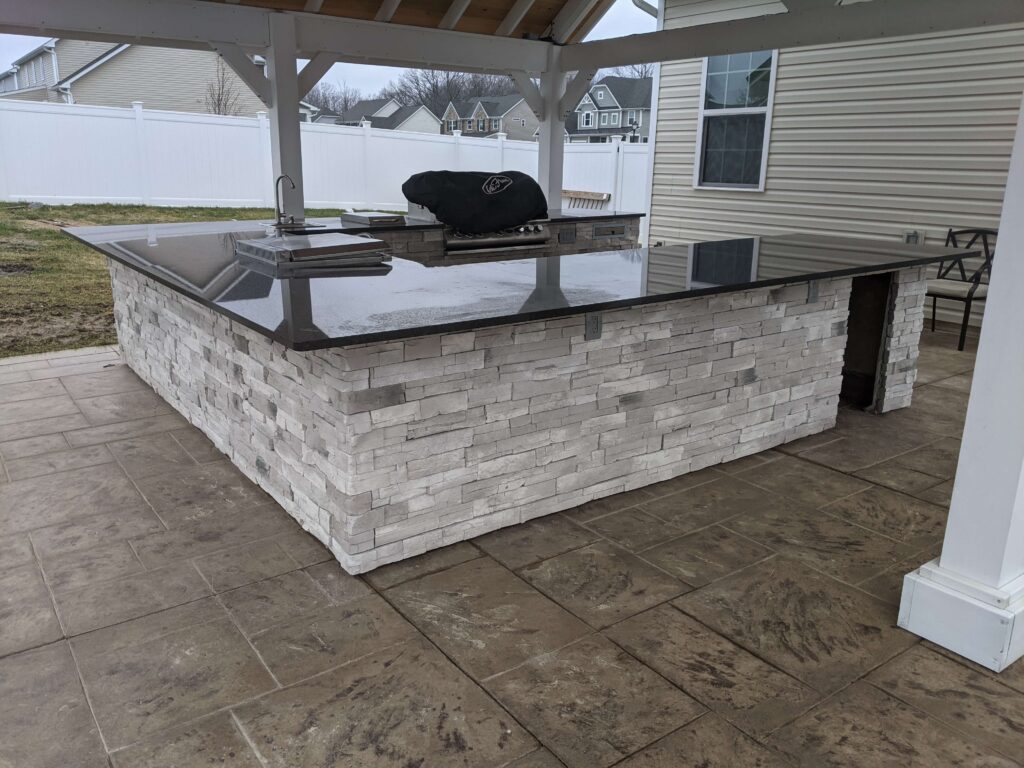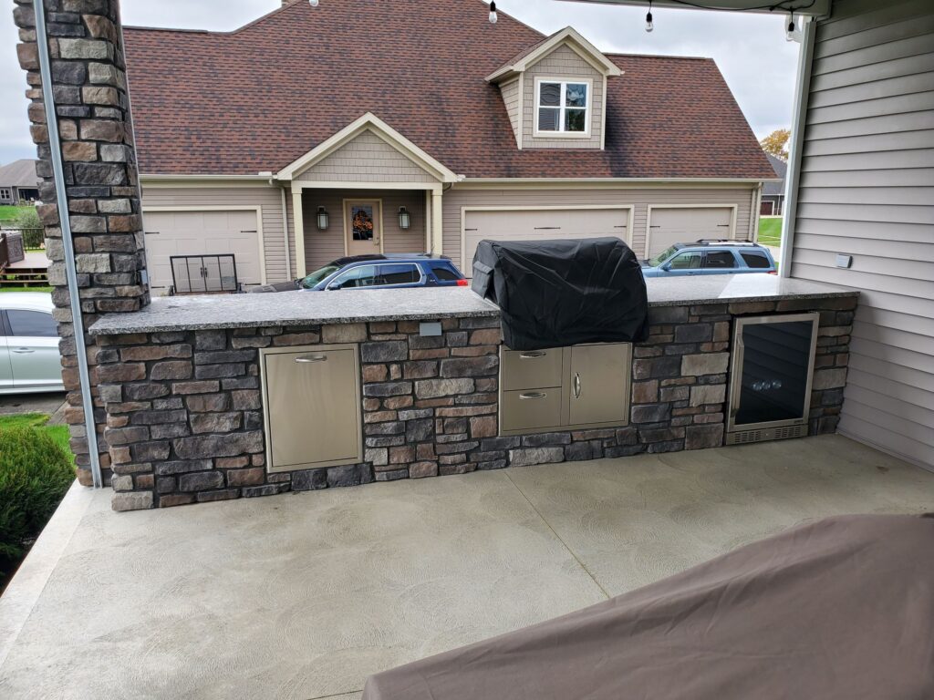 We use high-quality stone, brick, concrete, pavers, stainless steel, and weather-safe components built to withstand Ohio’s freeze-thaw cycles and year-round weather.